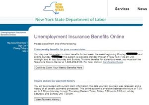 Note: The section for certifying your weekly benefits shows up each Sunday to allow you to certify your weekly benefits. The rest of the time you should still see the 2nd option of ‘View Payment History’.